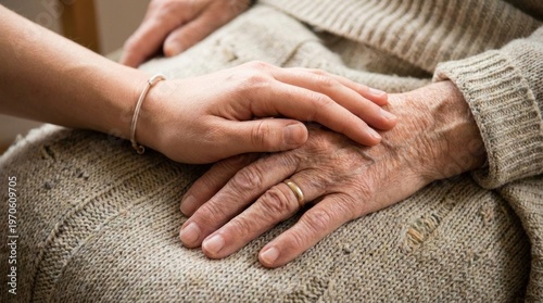 Young hand comforting older gentle caring gesture