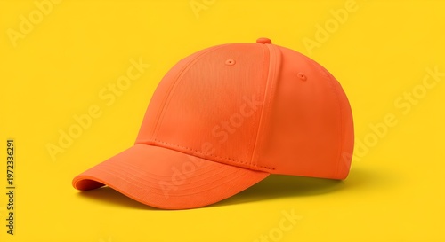 Orange Cap Close Up Mockup Side Perspective Yellow Background