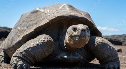 Giant tortoise in natural habitat, close-up view