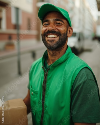 Happy Delivery Man Smiling in Green Vest