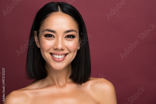 Woman smiling with straight hair in studio portrait setting