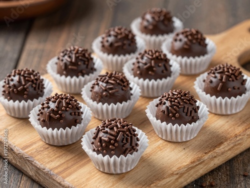 Erythritol brigadeiros in paper cups, sugar free Brazilian dessert, healthy chocolate indulgence