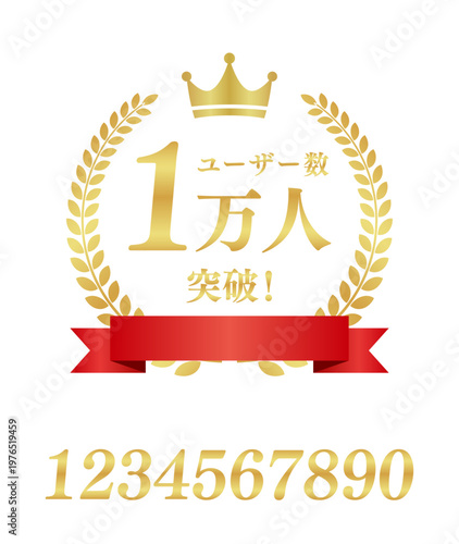 ユーザー数1万人突破の豪華正方形エンブレム | 赤いリボンの実績アイコン | 数字・テキスト編集可能