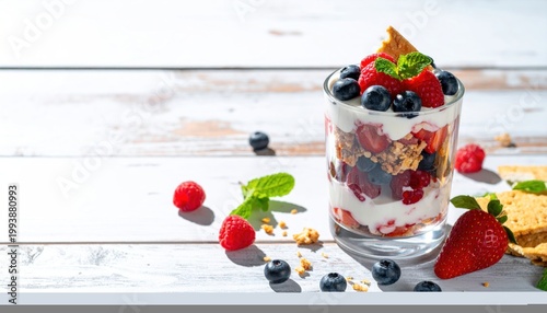 Fresh berries and yogurt dessert.