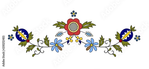 Traditional, modern Polish - Kashubian floral folk decoration vector, wzory kaszubskie, kaszubski wzór, haft