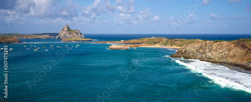 Some of the secondary islands of the archipelago of Fernando de Noronha - Rasa, Sela Gineta, Santo Antonio e Rata. the Santo Antonio Harbor is visible to the right