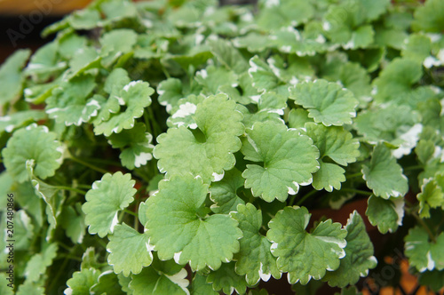 Glechoma hederacea variegata or creeping charlie green plant close up