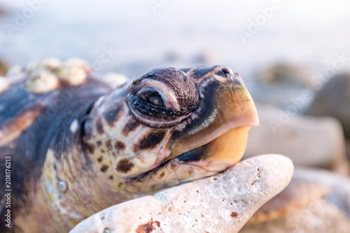 Tartaruga stanca o apparentemente morta adagiata sulle rocce della costa Salentina.