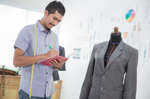 fashion designer writing a note