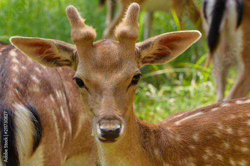 Kleiner damhirsch mit kleinem Geweih