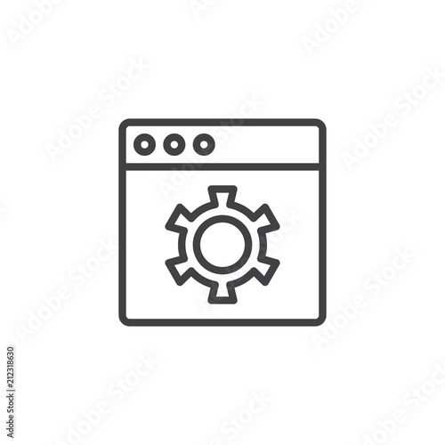 Browser settings outline icon. linear style sign for mobile concept and web design. Website with setting cogwheel simple line vector icon. Symbol, logo illustration. Pixel perfect vector graphics