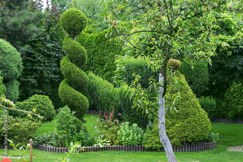 Shorn ornamental plants in a garden