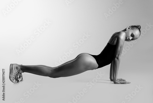 Girl in black body and sneakers