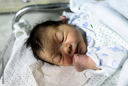 Bebé recién nacido en cuna de hospital 06