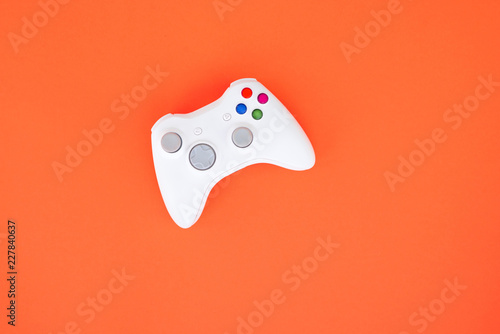 Gamepad is isolated on a red background. Gaming competition. White joystick on red background. Gamer concept. Controller for video games.