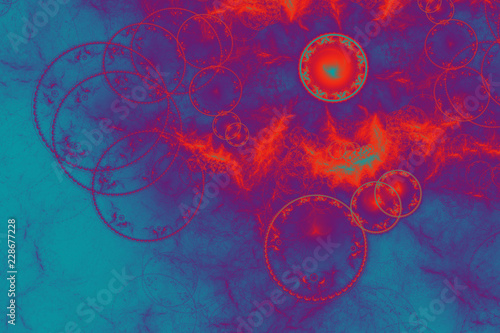 Intensiv-farbige Grafik - Ringe und Rauchwolken - Feuerrot und Blau