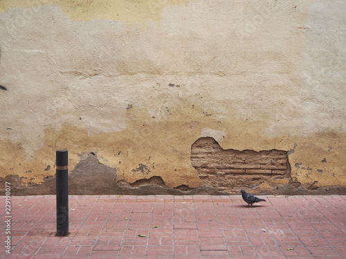Escena callejera,paloma frente a vieja pared