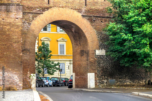 One of the entrance ways of the wall of Rome, viale of the crooked wall. Rome Italy.