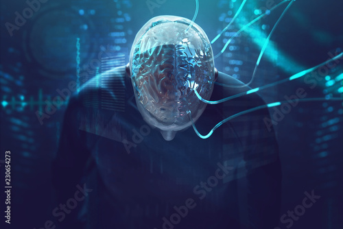 Künstliche Intelligenz - Gehirn ist an Kabel angeschlossen