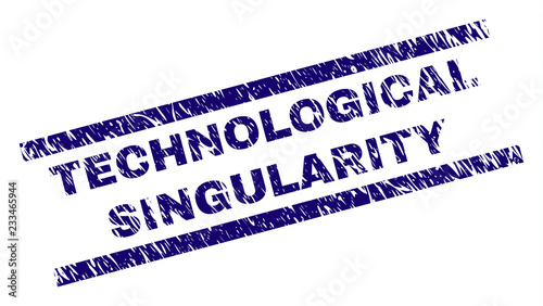 TECHNOLOGICAL SINGULARITY seal print with grunge style. Blue vector rubber print of TECHNOLOGICAL SINGULARITY text with grunge texture. Text caption is placed between parallel lines.