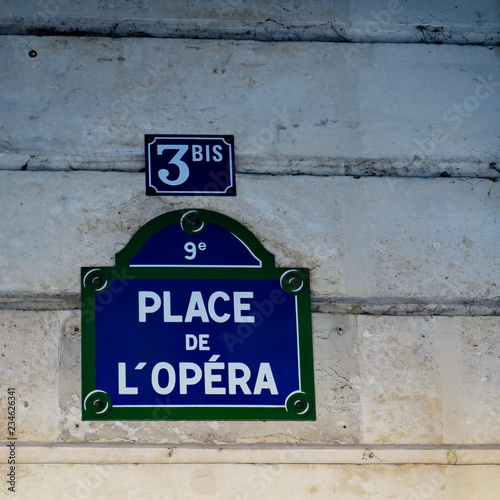 Place de l'Opéra. Paris; France. Plaque de nom de rue.
