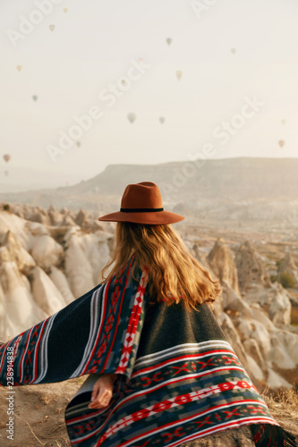 Travel. Woman In Hat Having Fun Outdoors, Enjoying Landscape