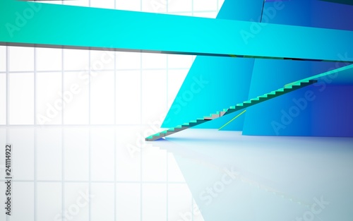 Abstract white and colored gradient interior multilevel public space with window. 3D illustration and rendering.