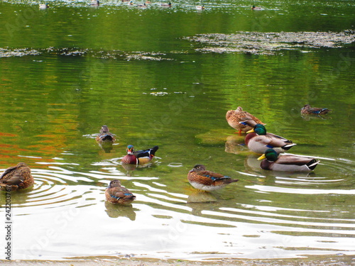 Patos de carolina y ánade azulón