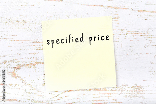 Yellow sticky note with handwritten text specified price