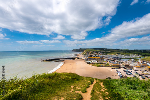 BRIDPORT, DORSET, UK - 6JUN2018: West Bay, seen from Cliffs to the East.