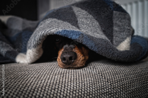 hund liegt und einer decke und nur die schnauze schaut raus