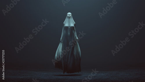 Floating Evil Spirit with Glowing Eyes in a Long Death Shroud Blowing in the Wind in a foggy void 3d Illustration 3d Rendering