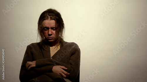 Drug addicted woman suffering withdrawal symptoms undergoing rehabilitation
