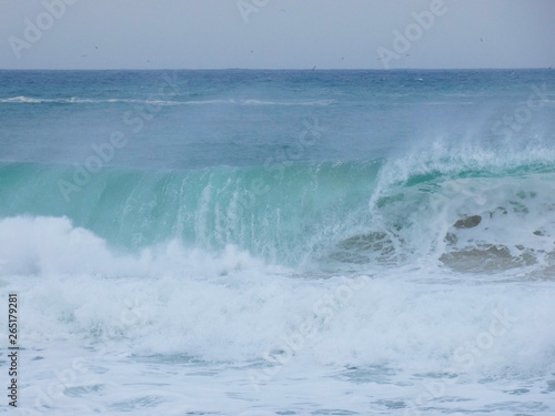 Olas llegando con fuerza a la costa, debido a una tormenta.