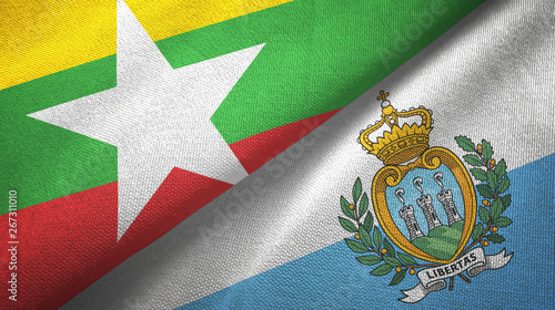 Myanmar and San Marino two flags textile cloth, fabric texture