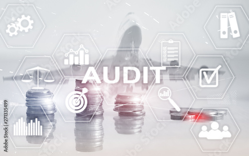 Audit Finance banking concept. Double Exposure Coins Financial and Business background.
