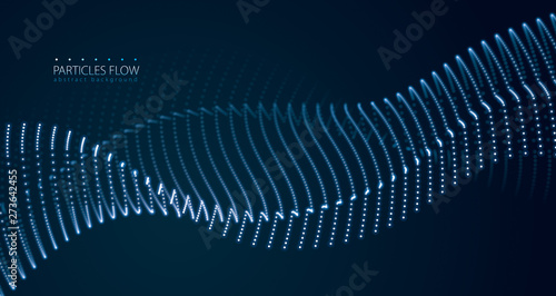 Flowing energy particles, wave of blurred lights. Blurred round lights vector effect illustration. 3d futuristic technology style.