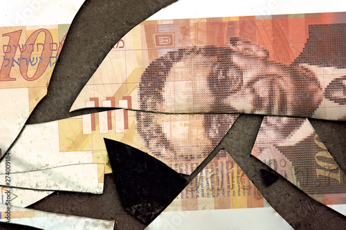 The Shekel banknote is cut on parts.