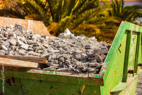 Metal container with construction waste rubble