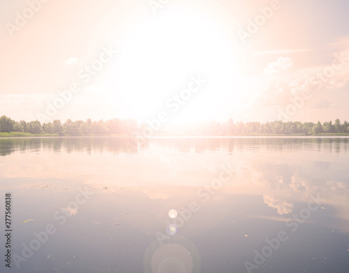 Sunset over the lake. Outside the city.