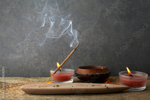 Incense stick and smoke from incense burning. Beautiful smoke. Aromatherapy