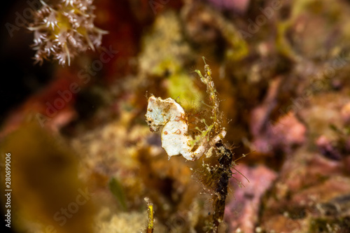 Pontoh's pygmy seahorse or the weedy pygmy seahorse, Hippocampus pontohi, is a seahorse of the family Syngnathidae native to the central Indo-pacific