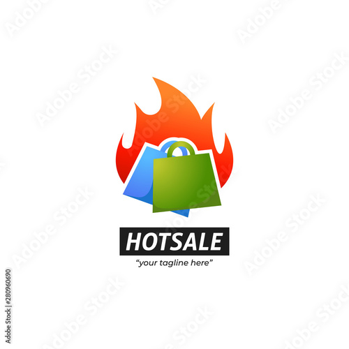 Hot sale shopping marketplace store logo with two shopping bag in red hot flame