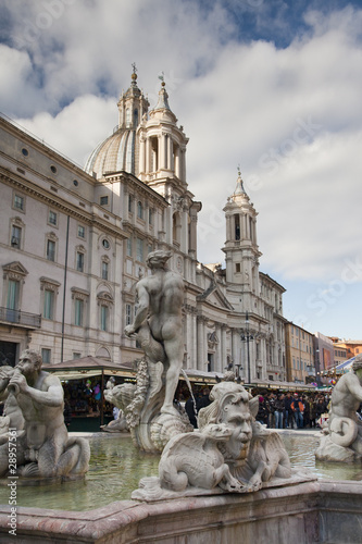 #28957561Piazza Navona, the Neptune fountain and the church of St. Agnes in the early morning