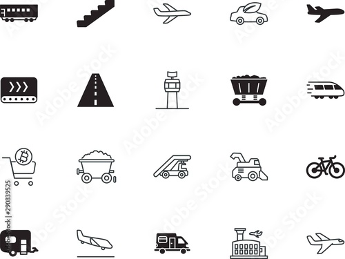 transport vector icon set such as: stripe, conveyor, stair, art, heavy, bus, combine, avenue, staircase, rounded, race, steps, automatic, walk, rock, arrivals, traveler, crypto, process, agriculture