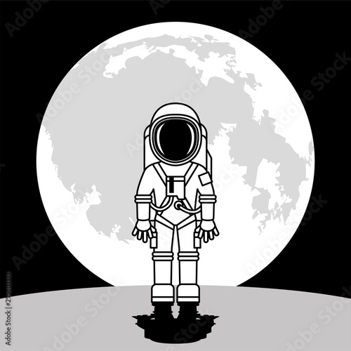 Astronaut steht auf Planeten mit Mond im Hintergrund