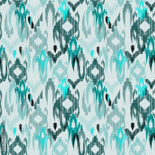 Seamless abstract pattern. Blue with gray ornament. Weaving ikat.