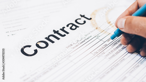 Unreliable business partnership. Man signing dirty contract.