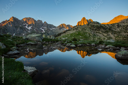 Sunrise in Ibon de Batisielles, Posets Maladeta Nature Park, Pyrenees, Spain