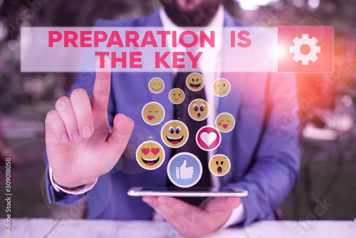 Word writing text Preparation Is The Key. Business photo showcasing it reduces errors and shortens the activities